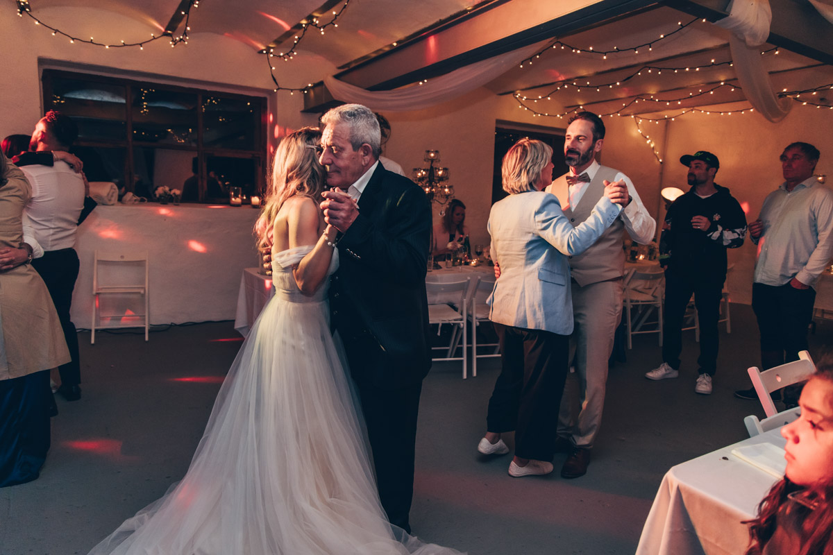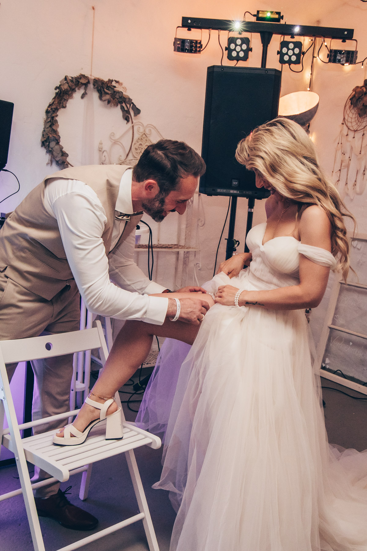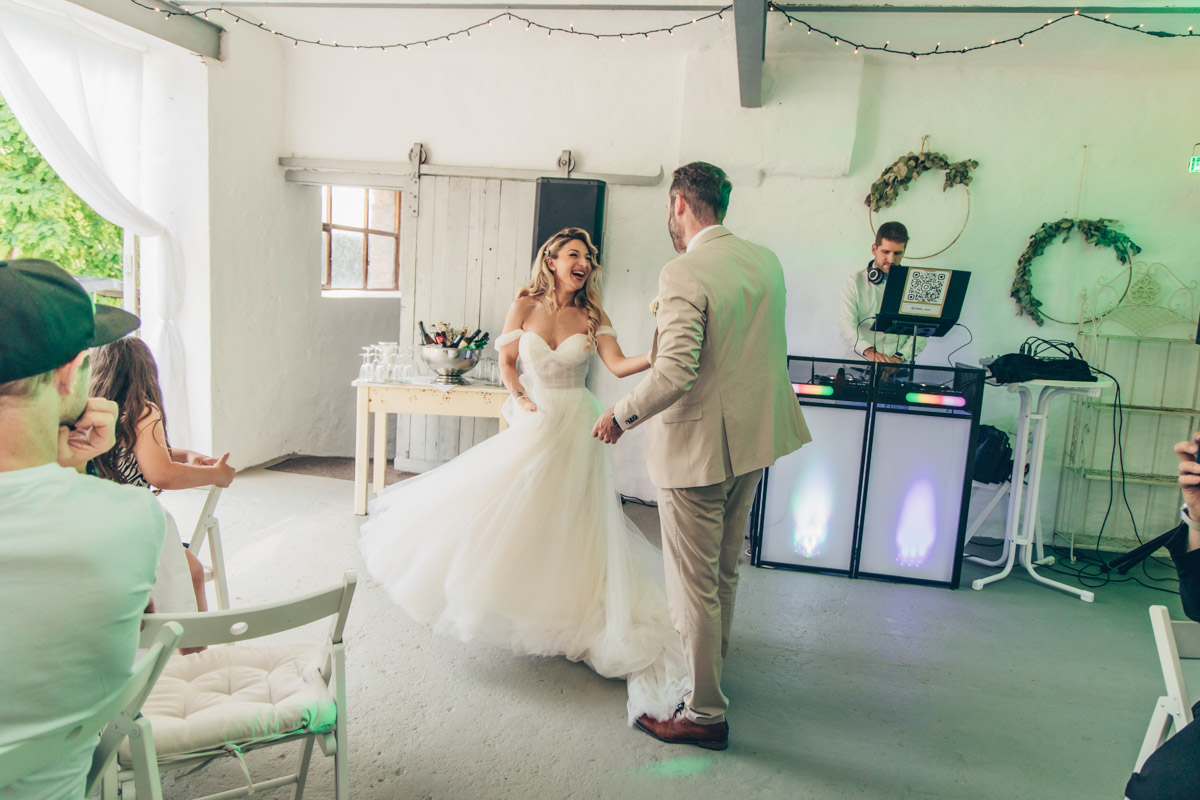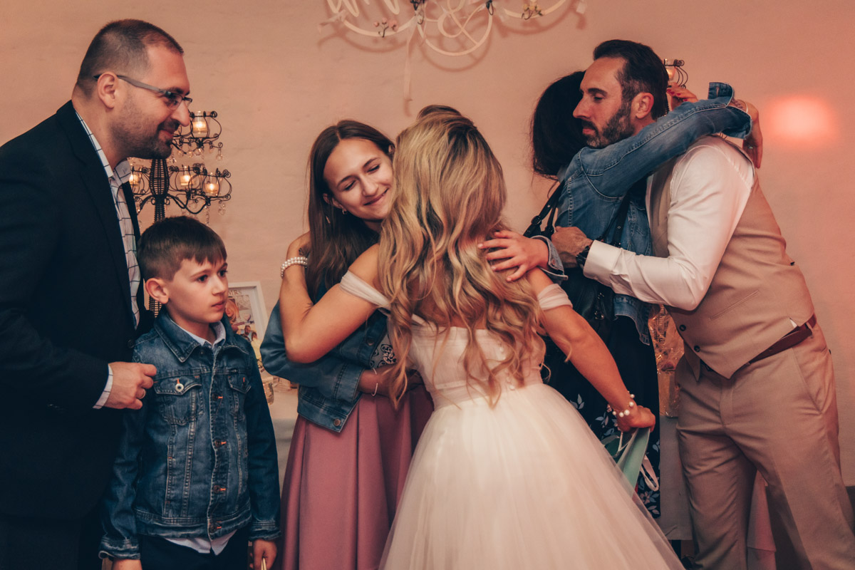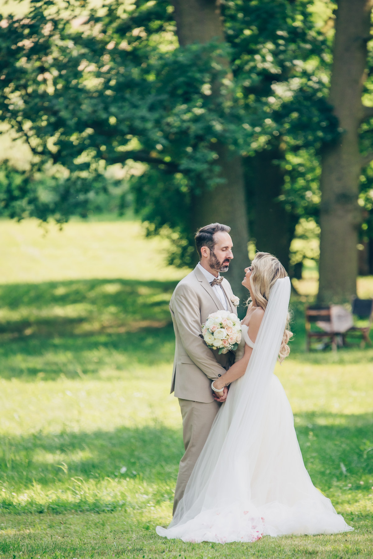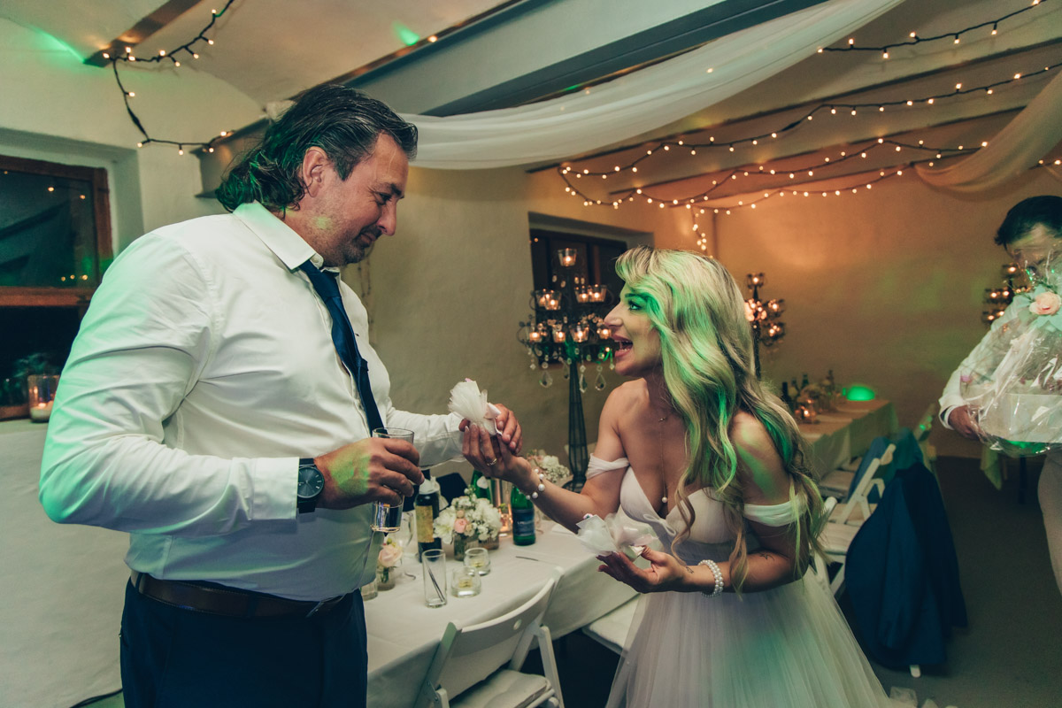 Der Hochzeitstanz und die anschlieĂende Party, fanden im NebengebĂ€ude des Schlosses statt. Diese umgebaute Scheune bietet genug Platz fĂŒrs tanzen mit angrenzender KĂŒche fĂŒr das Catering. Weil ich als Hochzeitsfotografin bekannt bin fĂŒr die „Golden Hour“ Fotos, holte ich das Brautpaar wĂ€hrend der Feier, kurz vor die Location, um einige Sonnenuntergang Fotos im Gegenlicht zu kreieren.